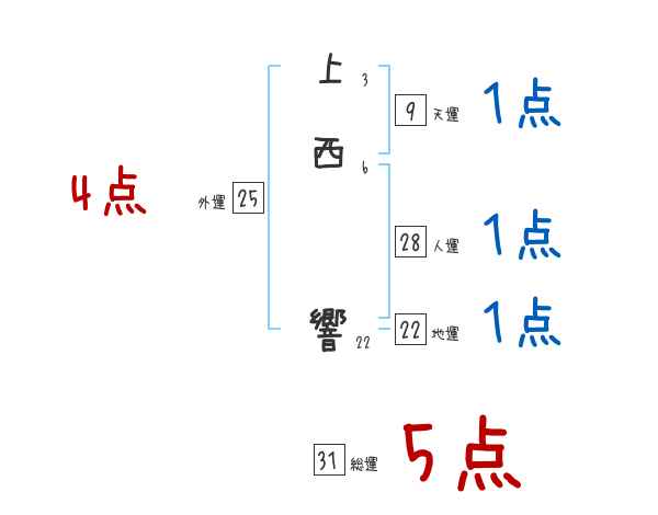 上西響さんの画数の鑑定結果