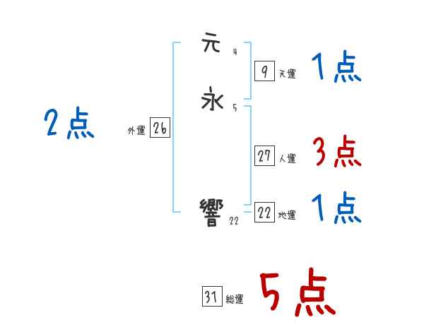 外運![]() | 元永響さんの外運は26画の2つ星!波瀾万丈かも。信頼できる人を大事にしましょう。 生活面を象徴する運勢です。外部から受ける影響力を表し、結婚運、家庭運や職場、環境への順応性を表します。 |