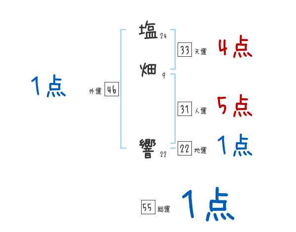 塩畑響さんの画数の鑑定結果