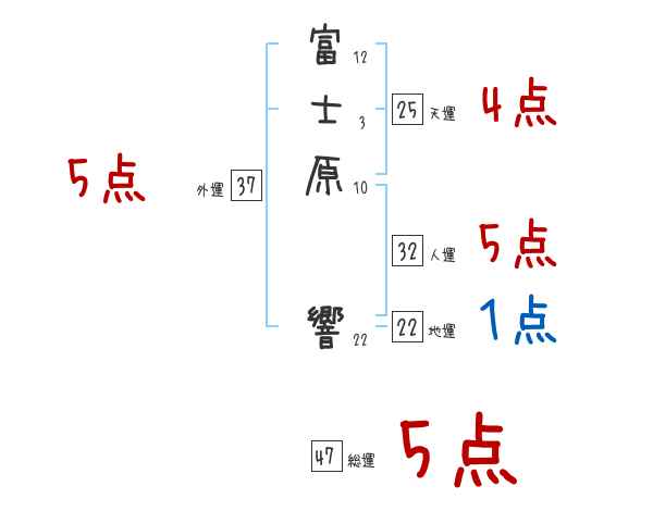富士原響さんの画数の鑑定結果
