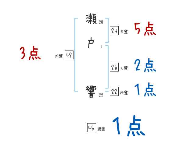 瀬戸響さんの画数の鑑定結果