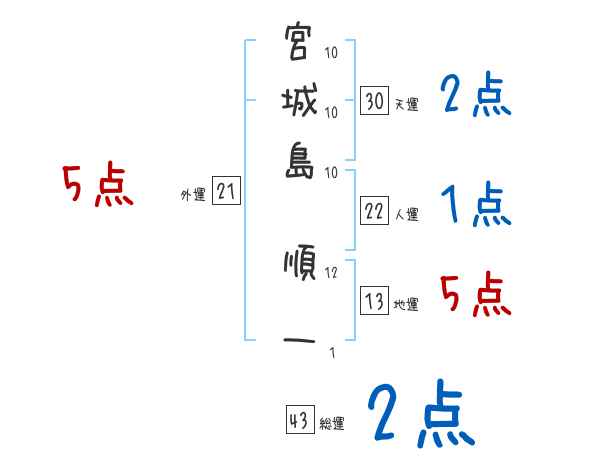 宮城島順一さんの画数の鑑定結果