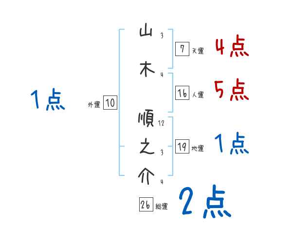 天運![]() | 山木順之介さんの天運は7画の4つ星!強い意志や信念を持ち独立心が強い。自立する。 家系が持つ宿命的な運勢を表します。祖先から受け継いだ苗字ですので自分の力が及びません。家柄を象徴します。 |