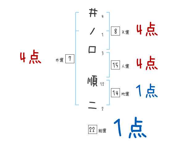 天運![]() | 井ノ口順二さんの天運は8画の4つ星!勤勉家。根気強く努力し成功する。忍耐力がある。 家系が持つ宿命的な運勢を表します。祖先から受け継いだ苗字ですので自分の力が及びません。家柄を象徴します。 |