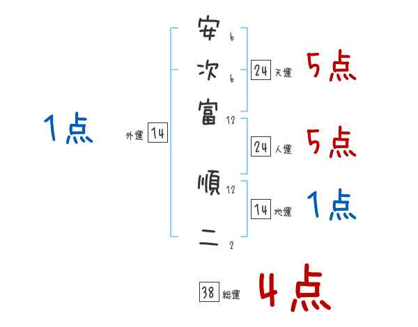 安次富順二さんの画数の鑑定結果