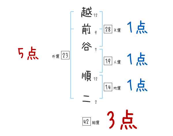 越前谷順二さんの画数の鑑定結果