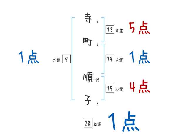 寺町順子さんの画数の鑑定結果