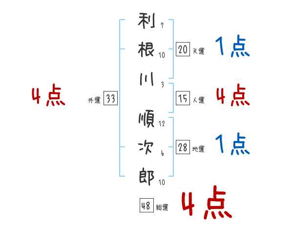地運![]() | 利根川順次郎さんの地運は28画の1つ星!家庭環境に注意。スポーツで活躍できる能力があるかも。 個性を表す基礎的な運勢です。性格形成や対人関係、行動力など家庭環境に影響されます。主に誕生してから20歳くらいまでの若年期の運勢を表します。 |