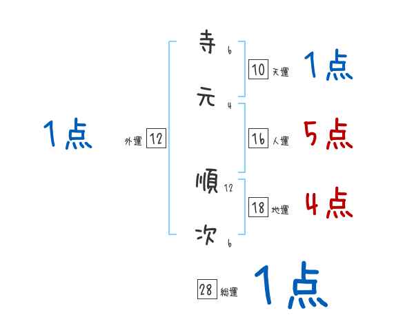 寺元順次さんの画数の鑑定結果