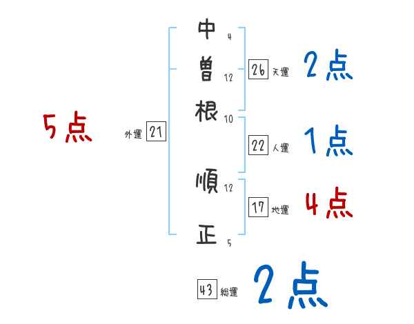 中曽根順正さんの画数の鑑定結果