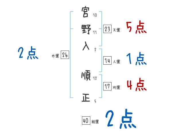 宮野入順正さんの画数の鑑定結果