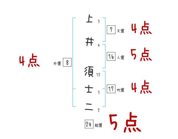 上井須士二さんの画数の鑑定結果