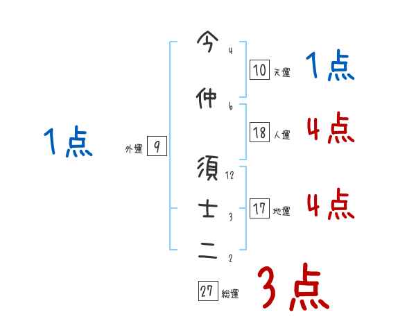 天運![]() | 今仲須士二さんの天運は10画の1つ星!不安を感じやすい傾向。ストレスを抱えないように注意しましょう。 家系が持つ宿命的な運勢を表します。祖先から受け継いだ苗字ですので自分の力が及びません。家柄を象徴します。 |