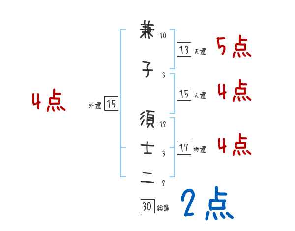 兼子須士二さんの画数の鑑定結果