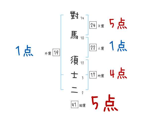 對馬須士二さんの画数の鑑定結果