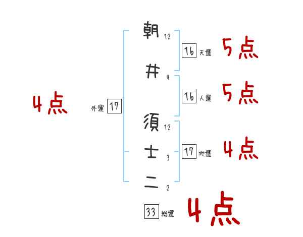 朝井須士二さんの画数の鑑定結果