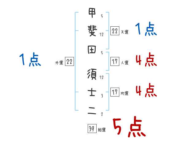 甲斐田須士二さんの画数の鑑定結果