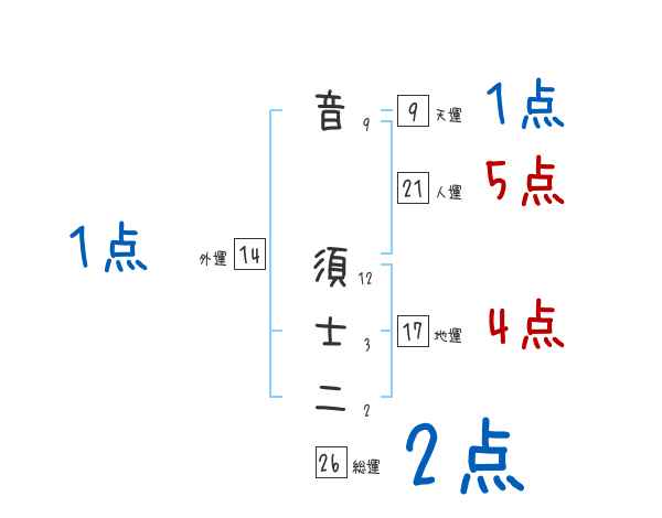 音須士二さんの画数の鑑定結果
