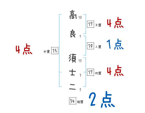 高良須士二さんの画数の鑑定結果