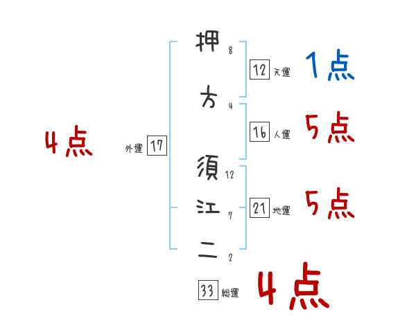 押方須江二さんの画数の鑑定結果