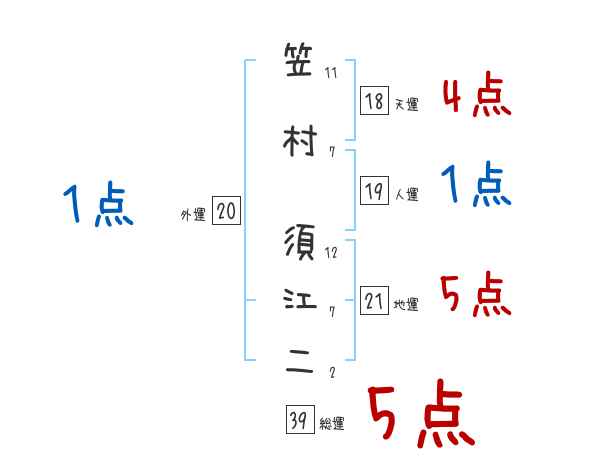 笠村須江二さんの画数の鑑定結果