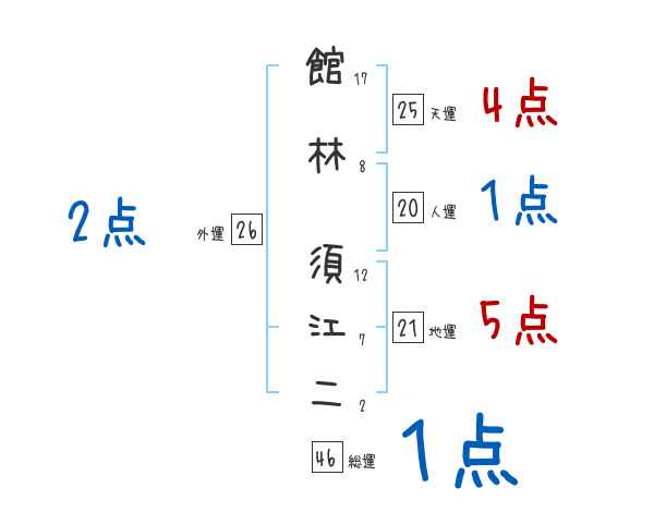 館林須江二さんの画数の鑑定結果