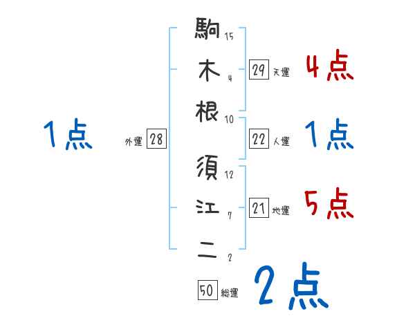 駒木根須江二さんの画数の鑑定結果