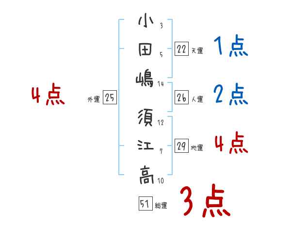 家系が持つ宿命的な運勢を表します。祖先から受け継いだ苗字ですので自分の力が及びません。家柄を象徴します。