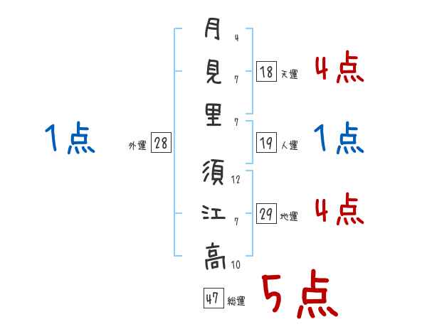 総運![]() | 月見里須江高さんの総運は47画の5つ星!実力が開花し発展する円満な人生。財に恵まれる。 あなたの人生を表す1番重要な運勢です。生涯を通じて影響する総合運となり、主に50歳以降の晩年期に影響を及ぼします。 |