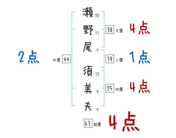 瀬野尾須美夫さんの画数の鑑定結果