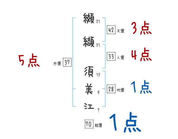 天運![]() | 纐纈須美江さんの天運は42画の3つ星!病気に注意。多芸であるが消極的でおとなしい。 家系が持つ宿命的な運勢を表します。祖先から受け継いだ苗字ですので自分の力が及びません。家柄を象徴します。 |