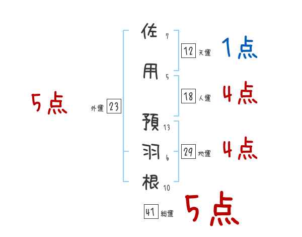 佐用預羽根さんの画数の鑑定結果