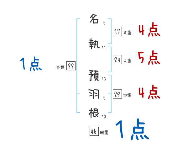 名執預羽根さんの画数の鑑定結果