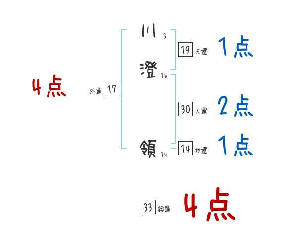 外運![]() | 川澄領さんの外運は17画の4つ星!積極的な行動力。地位を気づき財産を手に入れる。純粋な心と直感力。 生活面を象徴する運勢です。外部から受ける影響力を表し、結婚運、家庭運や職場、環境への順応性を表します。 |