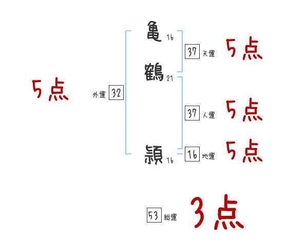 亀鶴頴さんの画数の鑑定結果