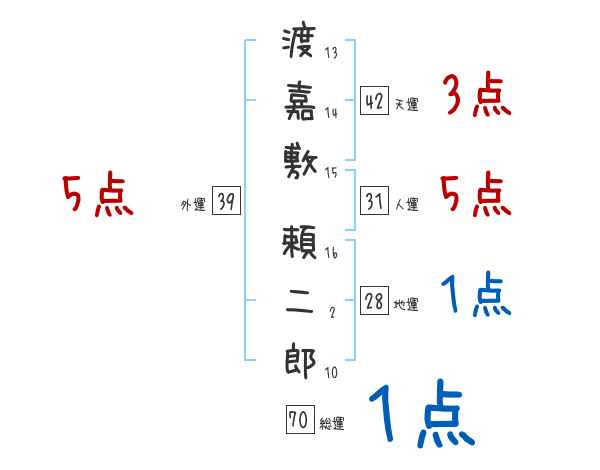 渡嘉敷頼二郎さんの画数の鑑定結果