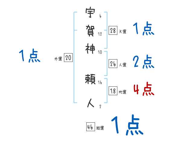 宇賀神頼人さんの画数の鑑定結果