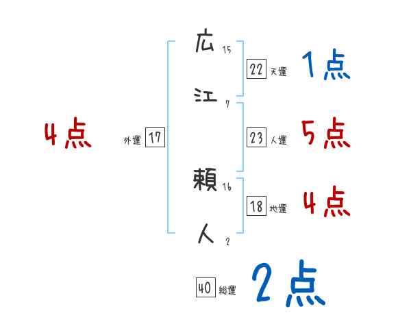 広江頼人さんの画数の鑑定結果