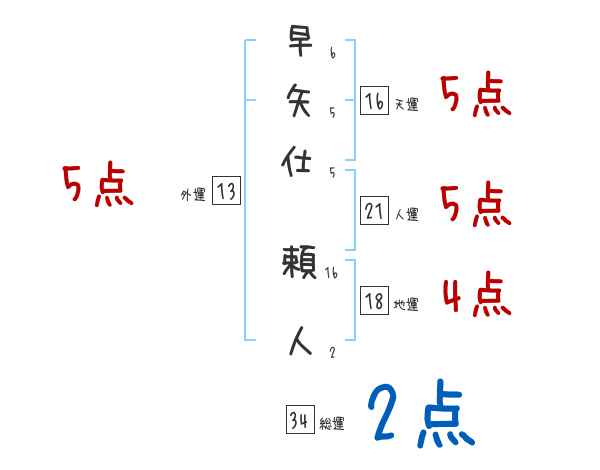 天運![]() | 早矢仕頼人さんの天運は16画の5つ星!人望が厚く大きく発展する。逆転成功が見える。 家系が持つ宿命的な運勢を表します。祖先から受け継いだ苗字ですので自分の力が及びません。家柄を象徴します。 |