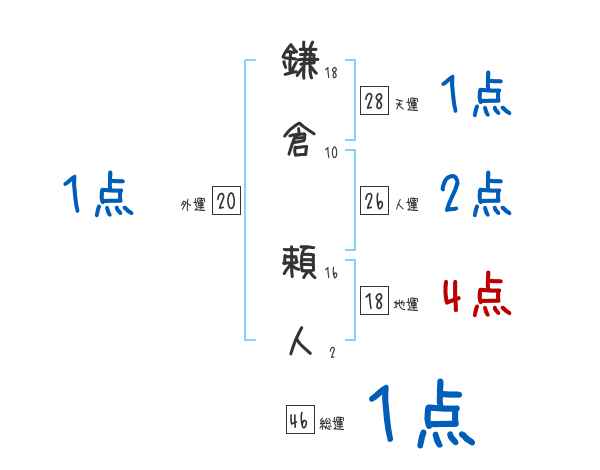 鎌倉頼人さんの画数の鑑定結果