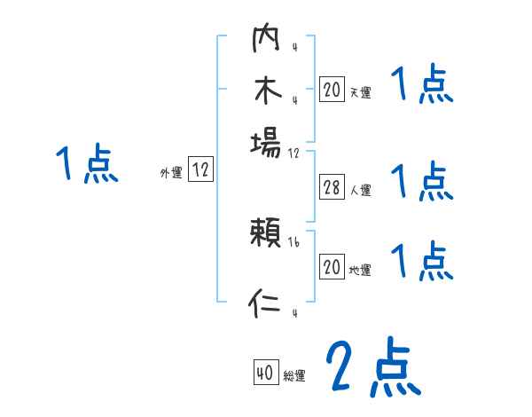 人運![]() | 内木場頼仁さんの人運は28画の1つ星!家庭環境に注意。スポーツで活躍できる能力があるかも。 性格や才能などを表す2番目に重要な運勢です。人間関係や協調性、社会的な成功に影響します。主に20歳から50歳ぐらいまでの中年期の運勢を表します。 |