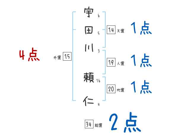 宇田川頼仁さんの画数の鑑定結果