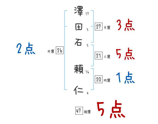 澤田石頼仁さんの画数の鑑定結果