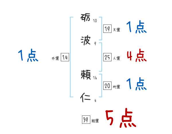 天運![]() | 砺波頼仁さんの天運は19画の1つ星!優れた才能を持ちますが、協調性が足りないことも。周りの人と協力する事を意識しましょう。 家系が持つ宿命的な運勢を表します。祖先から受け継いだ苗字ですので自分の力が及びません。家柄を象徴します。 |