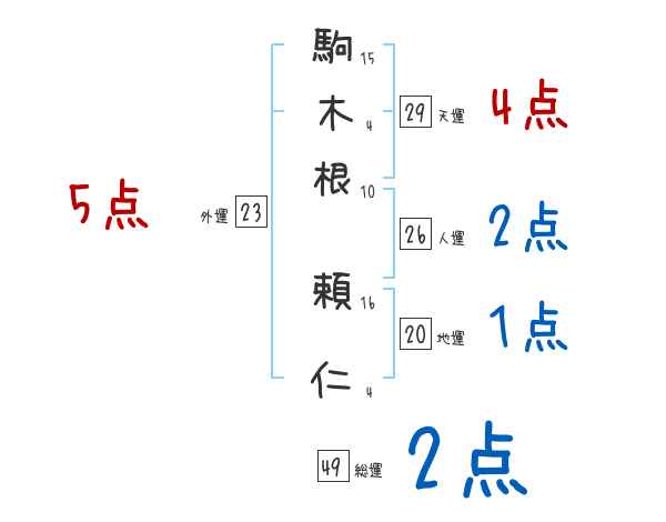 駒木根頼仁さんの画数の鑑定結果