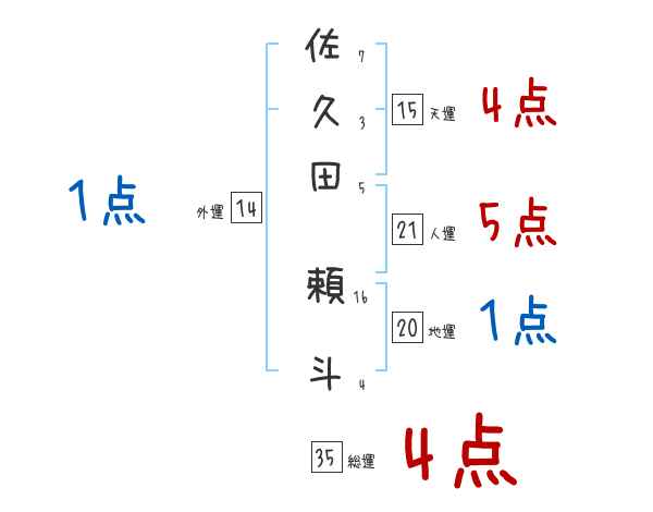 佐久田頼斗さんの画数の鑑定結果