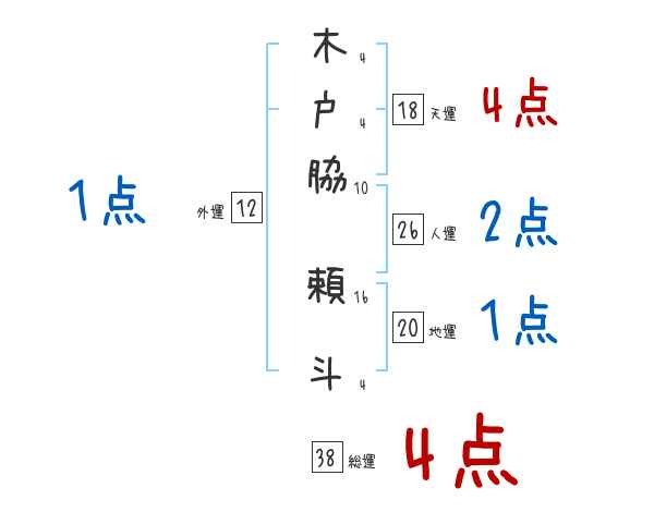 天運![]() | 木戸脇頼斗さんの天運は18画の4つ星!情熱的で剛気。忍耐力があり信頼される。 家系が持つ宿命的な運勢を表します。祖先から受け継いだ苗字ですので自分の力が及びません。家柄を象徴します。 |