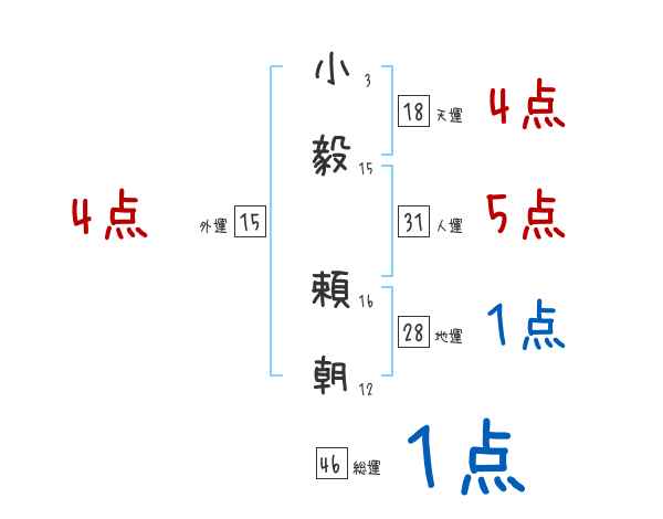 小毅頼朝さんの画数の鑑定結果