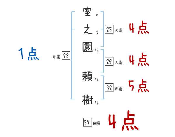 室之園頼樹さんの画数の鑑定結果