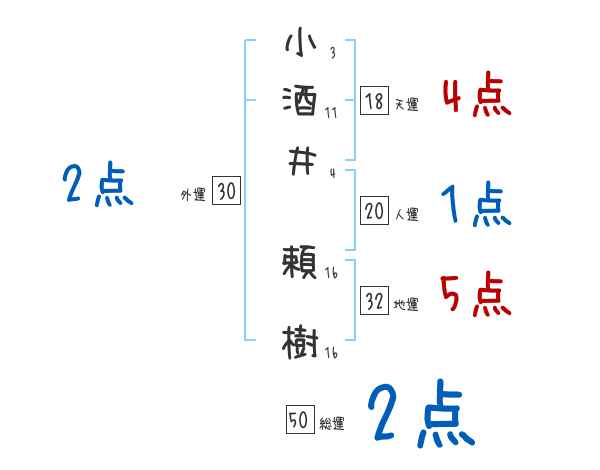 地運![]() | 小酒井頼樹さんの地運は32画の5つ星!柔軟性があり成功する。チャンスが多く金運が良い。 個性を表す基礎的な運勢です。性格形成や対人関係、行動力など家庭環境に影響されます。主に誕生してから20歳くらいまでの若年期の運勢を表します。 |